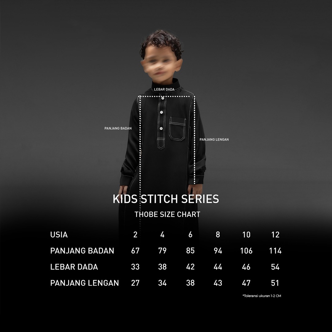 Usia 8 : Panjang Thoub 94 / Lebar Dada 44 / Panjang Lengan 43