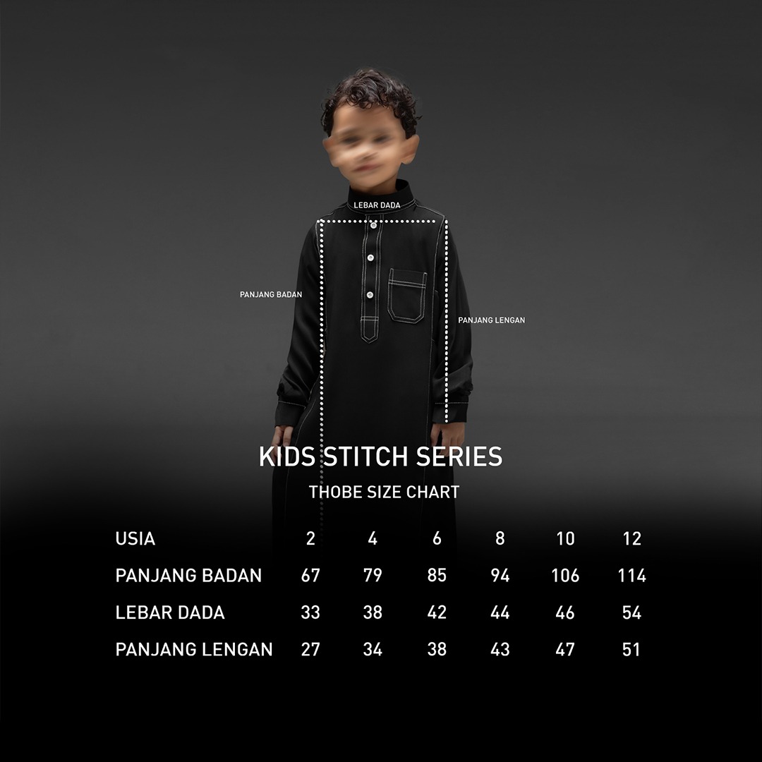 Usia 8 : Panjang Thoub 94 / Lebar Dada 44 / Panjang Lengan 43