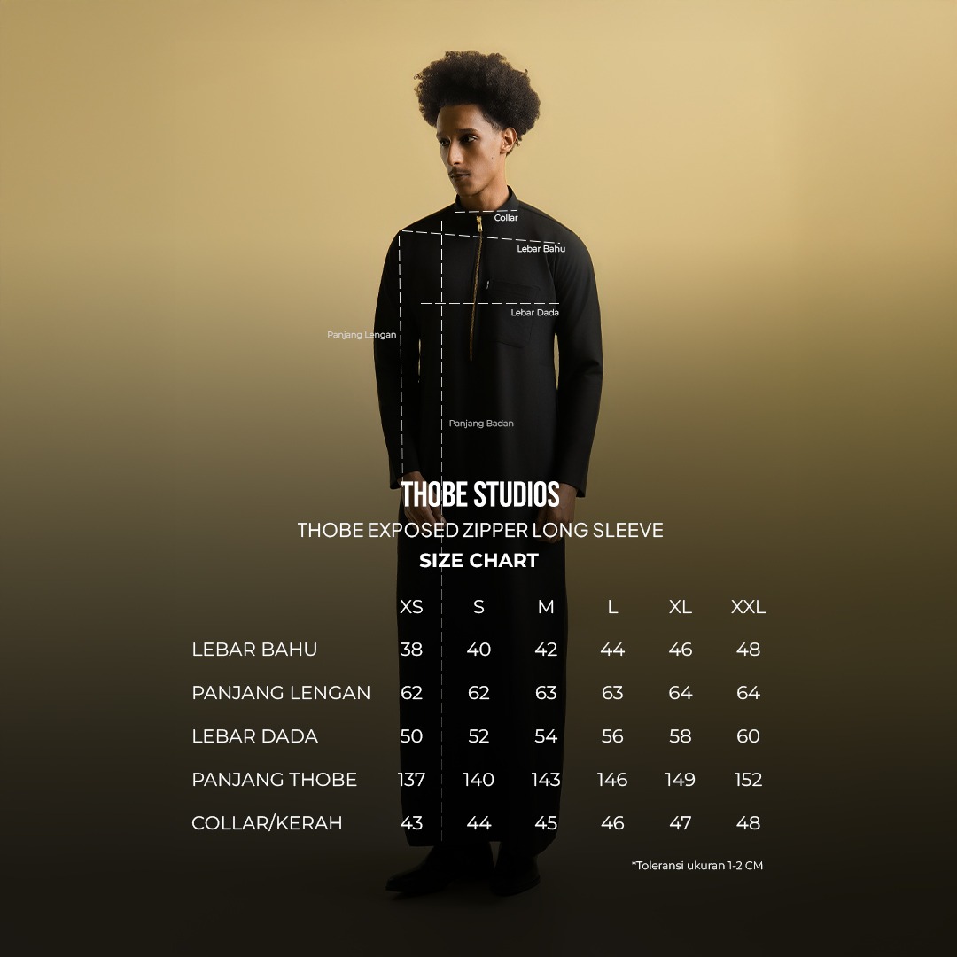 - Size XS : Lebar Bahu 39/Panjang Lengan 61/Lebar Dada 50/Panjang Thoub 137/Kerah 39