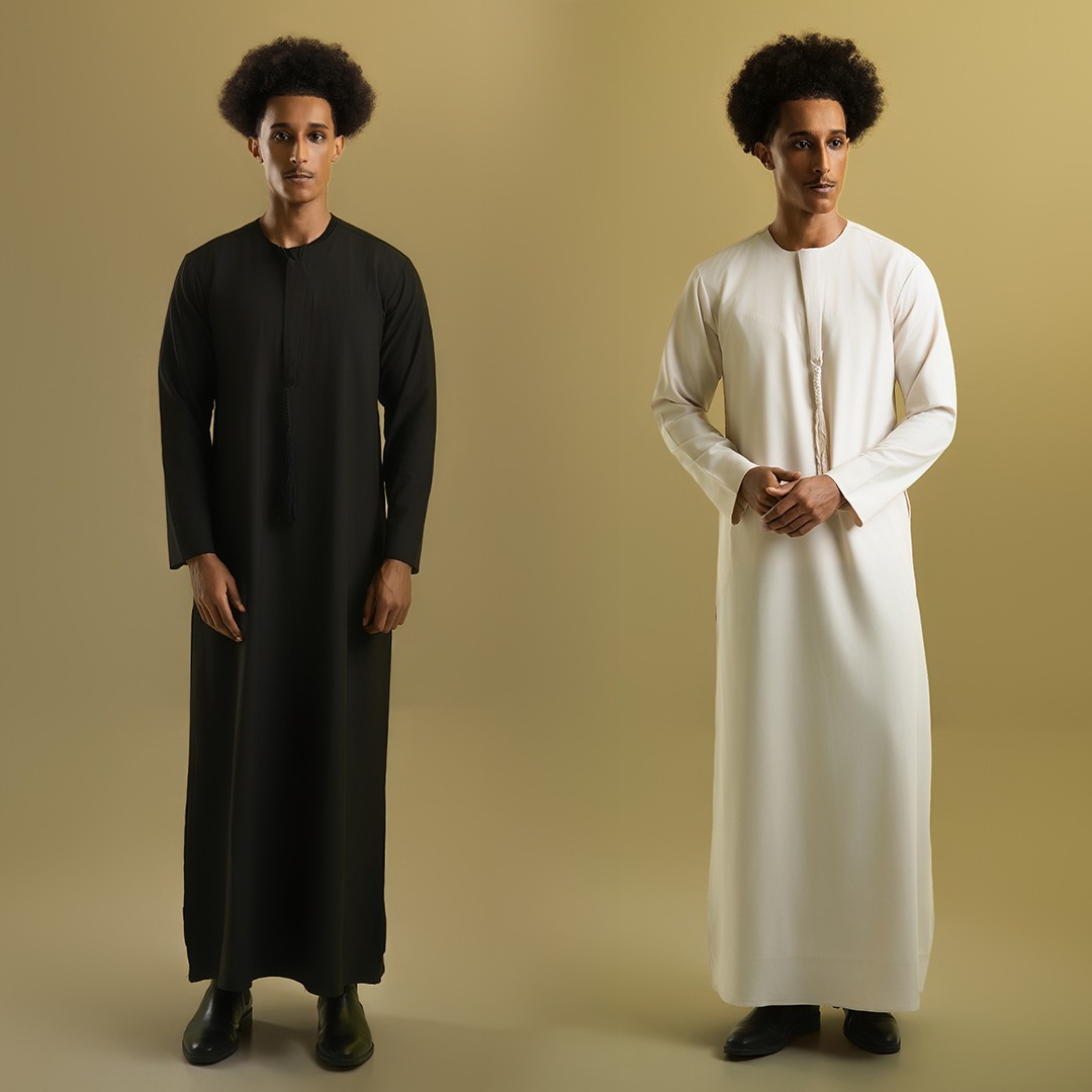 Thobe Kandora menghadirkan siluet kandora dengan sentuhan modern dari Thobe Studios. Desainnya clean, tegas, dan berwibawa merepresentasikan kesederhanaan yang elegan untuk pria masa kini.